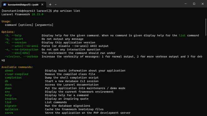 php artisan list