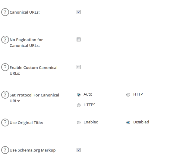 - Canonical URLs – Enabling this will make sure your website is not being punished for any duplicate content or multiple URLs that lead to the same content