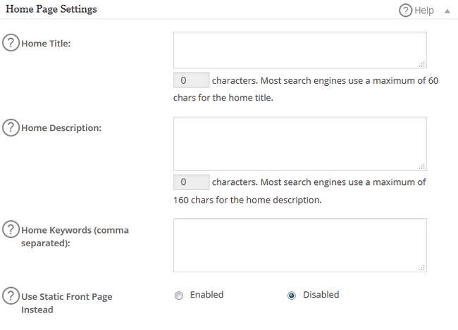 - Home Keywords (comma separated) – If you wish to use Meta Keywords, although they are not taken into consideration by most search engines, you can do so in this field by separating them with commas. Always use keywords relevant to the content in order to maximize their effect