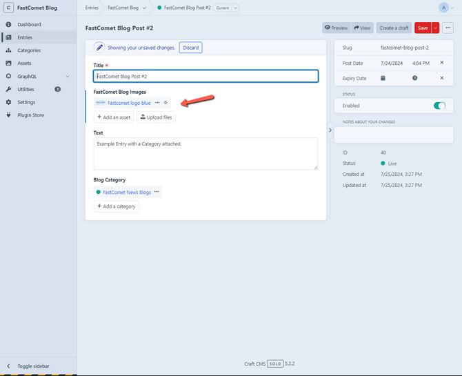 With that, you have successfully added your asset to the entry, which concludes our beginner’s look at Assets in Craft CMS. Next, we will move on to the next section of the dashboard: GraphQL.