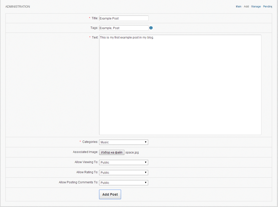 As soon as you are ready filling the fields on that form you will need to press the Add Post button right below the form in order for your post to be saved.