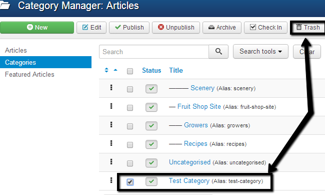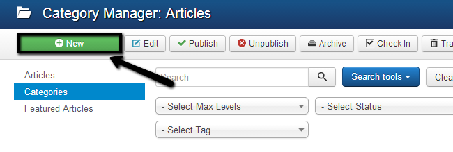 You can publish or unpublish different categories on your Joomla website in order to make them visible on your website or not.To publish a new category, go to the Category Manager, select the checkbox next to the category that you wish to publish and then click on the Publish button at the top.