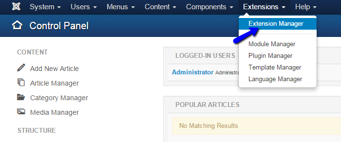 Locate the Extensions tab from the top menu and then choose the Extension Manager option.