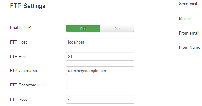 - FTP Root - This field requires the location of your Joomla website. Since we have already created the FTP account to enter directly the Joomla directory, it means that you can enter a / (slash) in this field only