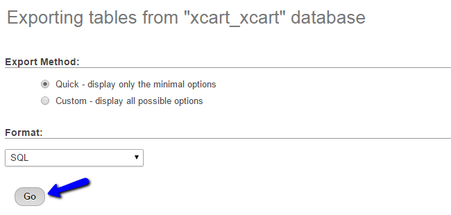 Click on the Go button, which will export a dump backup copy of your database on your local computer.