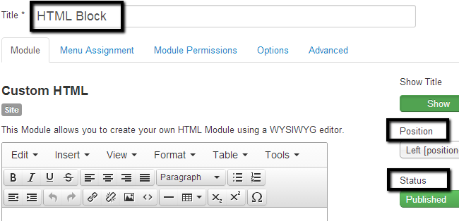 Paste the html code that you wish to place on your website and then click the OK button. Click on Save & Close button to create the new HTML block on your website.