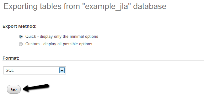 Click on the GO button, which will complete the process and export the database backup on your personal computer.