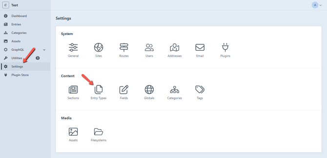 Firstly, go to Settings > Entry Types and click New Entry Type.