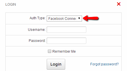 The Facebook login will be available from the Auth Type drop-down menu located in the Login form of your website.