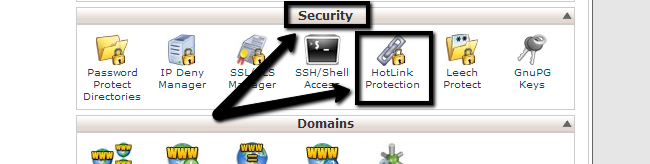 When you access your cPanel account, you will be presented with a list of different options or services. From there you need to locate the Security tab and click on the HotLink Protection service.