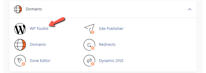 You will see a green message in the top-right of the screen, letting you know that the domain has been successfully added. You might also notice that the system will create a subdomain, and that is perfectly normal. That subdomain will become important later on when forcing HTTPS on the website. For now, though, please find the WP Toolkit itself. It is located in the Domains section of your cPanel.
