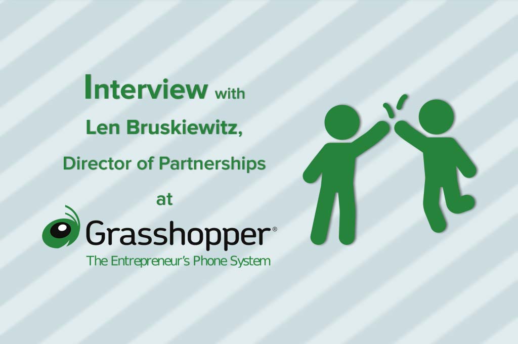 Len: My name is Len Bruskiewitz and I am the Director of Partnerships at Grasshopper, which means I cultivate relationships with companies that recommend our services to their customers. Prior to joining the company last year, I led business development/partner efforts at Constant Contact and Intuit. As you may guess from my background, I am passionate about helping small businesses/entrepreneurs to be more successful.