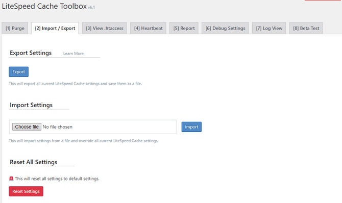 As the name suggests, the Import/Export tab allows you to export your LiteSpeed Cache configuration or import a configuration you might already have. We don’t need to tell you how handy this feature is!