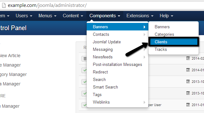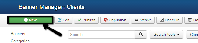 To creat your banners client, go to the Components tab and then Banners → Clients.