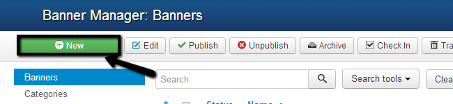 Now that you have set up a banner category and your banner client, you may proceed with the creation of your actual banner. To do so, go to the Components tab and then Banners -> Banners.
