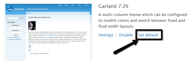 Then simply locate the Enabled Themes section and click on the Set Default button next to the theme that you wish to configure on your website.