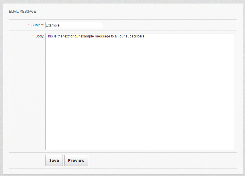 Once you have both of these filled please use either the Save or Preview button provided at the bottom of this section so you can respectively save or preview the message you have just wrote.