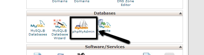 The next step is to access the phpMyAdmin service within your cPanel account. It allows you to review the database set on your website and manipulate it as per your needs. To do this, log into your cPanel account, locate the Databases section and click on the phpMyAdmin service.