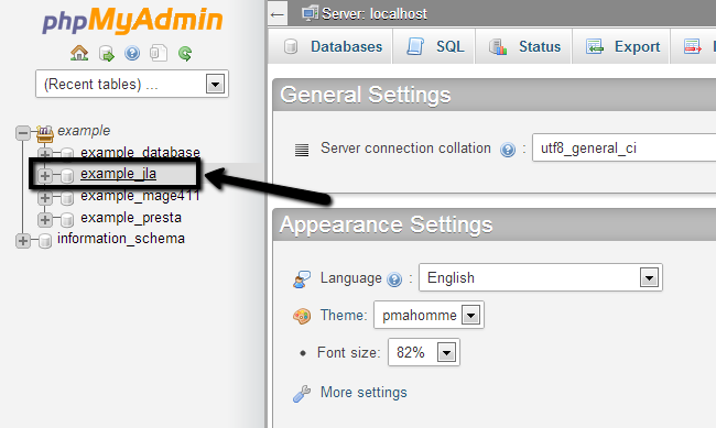 Select the database that you wish to edit. It is located on the left-side of the screen.
