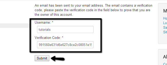 Click on the Submit button. You will receive an email with a Verification Code for your account. On the next page, you need to edit the following fields: