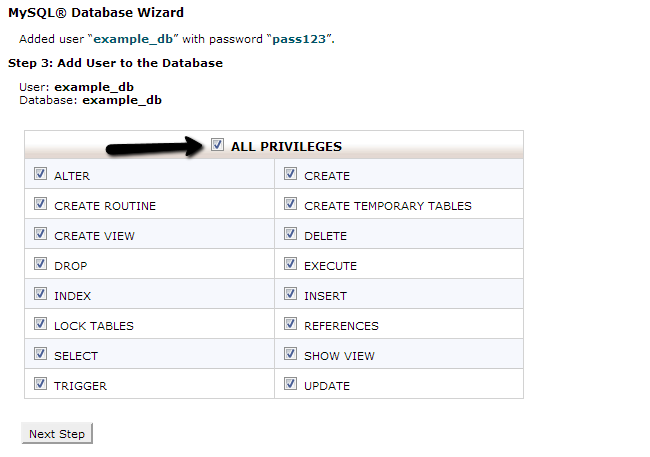 First you need to create an empty database on your account and user for it. This user must have All Privileges to your database. Log into your cPanel account and navigate to the Databases tab and select Database Wizard.