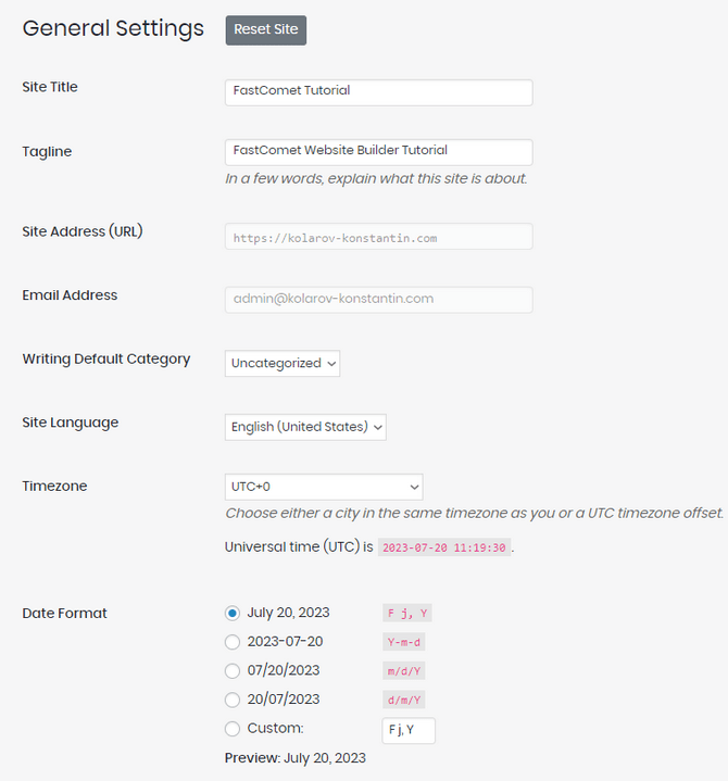 - Timezone - Configure the local time of your website;