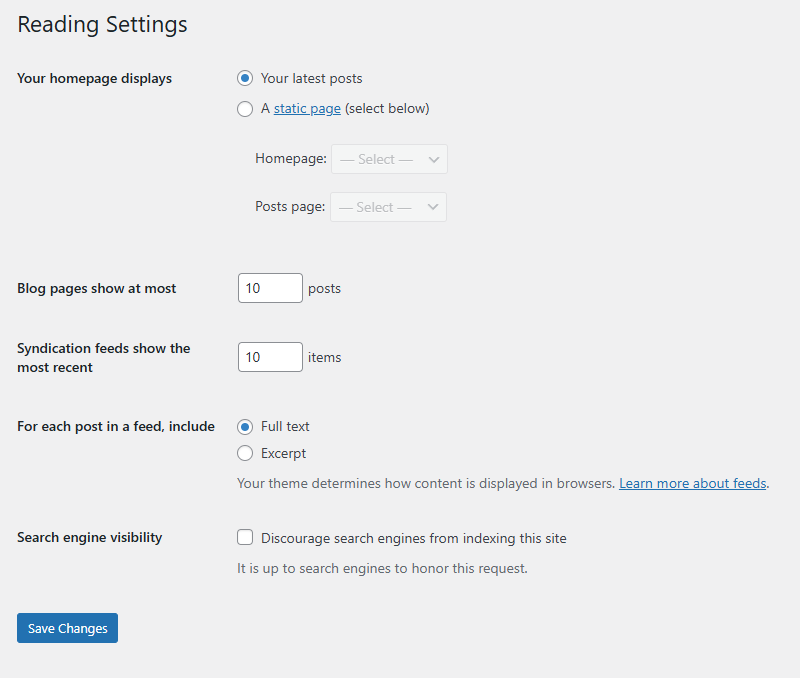 Although there are not many reading options, they are all important and can change how your website's homepage looks and behaves.
