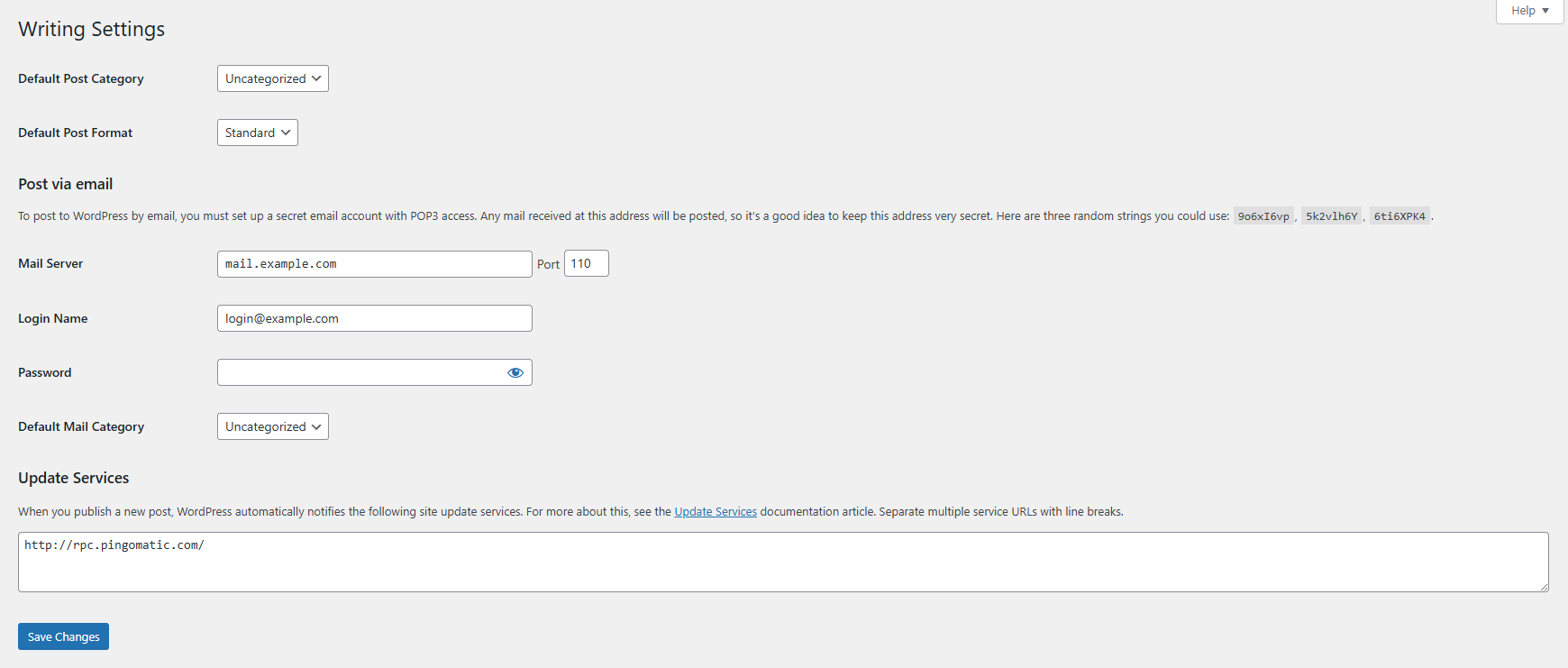 - Default Mail Category - WordPress will automatically assign this category to all posts published via email;