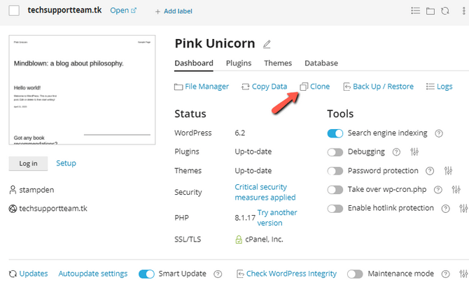 It is vital to mention that the WP Toolkit's cloning function will not clone the environment from the original website. For instance, if the other website has an SSL certificate, the WP Toolkit will not automatically assign one for the cloned website. If the live website uses HTTPS, then the clone will also use HTTPS, regardless of the presence of an SSL certificate. Another example is the cloning process will not check if the PHP version for the cloned website is the same as the PHP version for the live website. While it automates a lot of things, the WP Toolkit's cloning function will need a bit of intervention from you to finalize things.