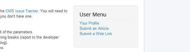 Log into your website as an Editor. Locate the User Menu section and click on the Submit an Article.