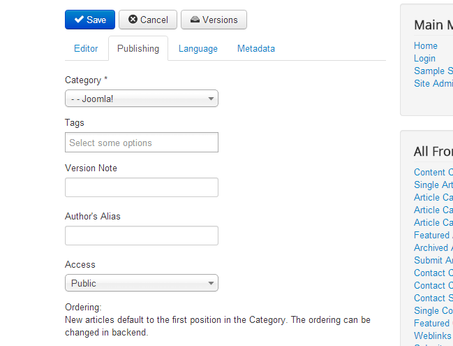 Language - Select the language of the new article. If you have a multilingual Joomla website, this feature is quite helpful.