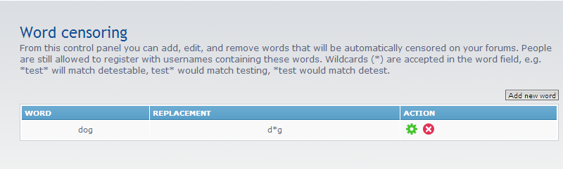 Word censoring is one of the most probably best features of the phpBB Forum platform and at the same time a mandatory for such type of platform where the users have the option to post content. It is a convenient way of controlling the content in order to reduce the amount of unpleasant contents on your Forum.