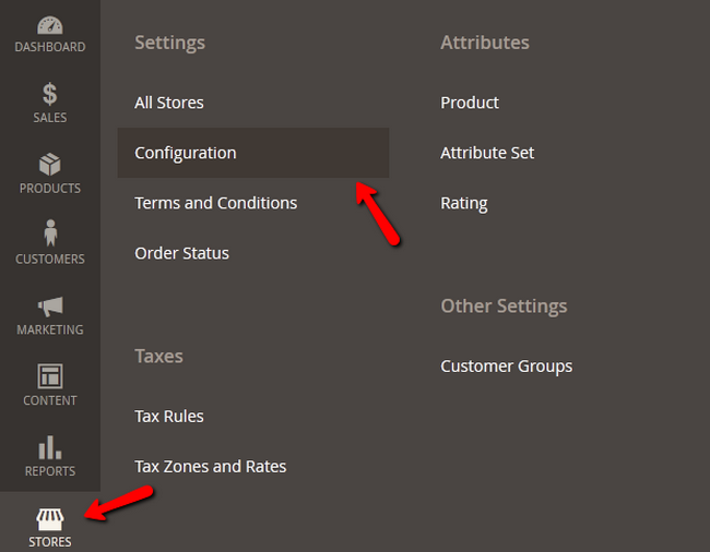 Copy the script you are presented with, access the admin area of your Magento 2 and navigate to Stores → Configuration.