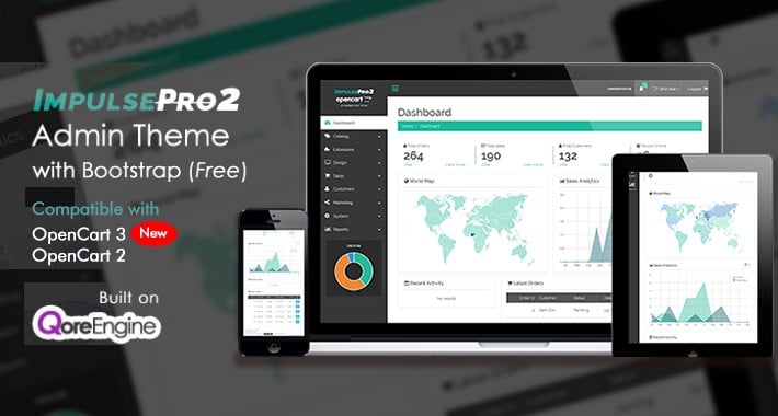 ImpulsePro2 is a free OpenCart Admin Theme based on Bootstrap and QoreEngine. Thanks to QoreEngine, this new version integrates effortlessly into your existing setup.