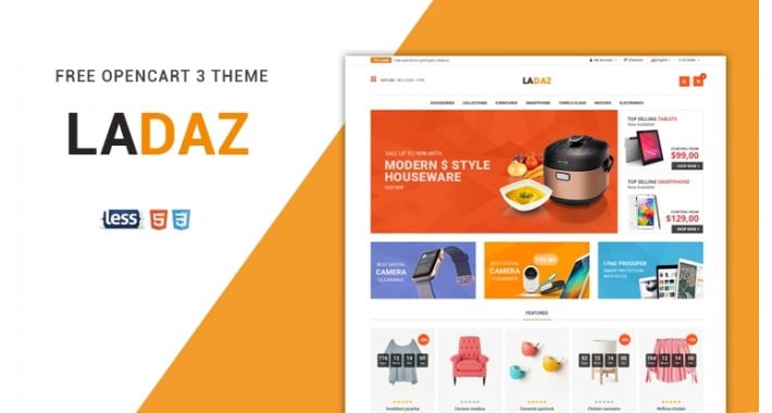 So Ladaz is a fantastic free OpenCart theme created specifically for eCommerce sites such as electronics, mobile phones, home accessories, laptops, and any other type of online store.