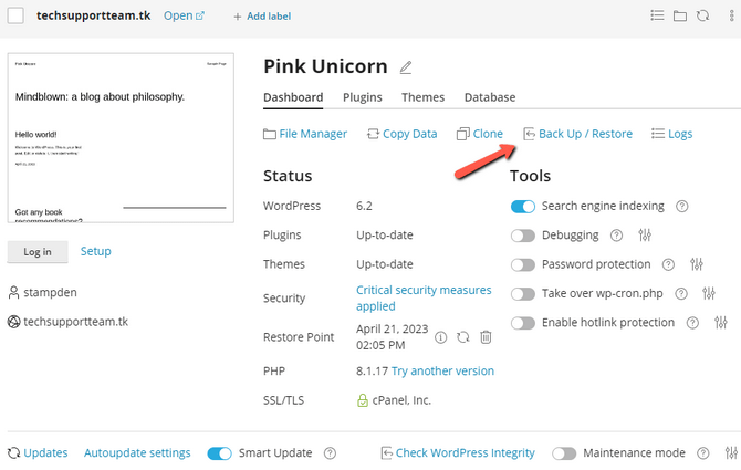 The WP Toolkit comes with the option to create backups of your website and restore it from those backups. Of course, our hosting services also come with automated daily backups. Still, the WP Toolkit allows you to create backups on the spot.