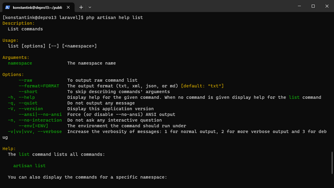 php artisan list