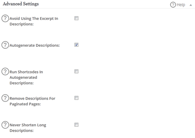 - Run Shortcodes in Autogenerated Descriptions – If you have any shortcodes in the content that will be used to generate a description, they will be ran if you have enabled this option