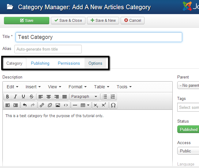 This tutorial reviews the different options of the Category Manager in Joomla. As we said in the previous tutorial, the script is designed as a CMS (Content Management System) and it provides multiple ways to build up and categorize a large number of different content, such as articles. It also helps you manage your content they way you want, which means categorizing it through different criteria. This is where the Category Manager comes up and allows you to do just that.