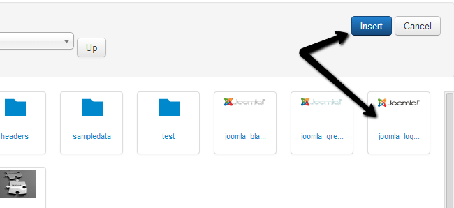 Scroll down to the Upload file section. There you will be allowed to select a file from your personal computer and upload it to your account on the server. When you are ready uploading the new image file, it will be available within the list above the Upload file section. Select your logo image and click Insert to proceed.