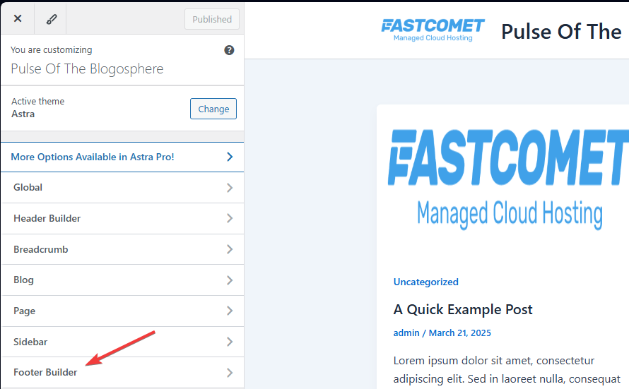 It is important to note, though, that the steps to changing the footer of a classic theme are not as uniform as when it comes to block themes. That is simply because classic themes are created by different developers with their own customization processes. There is no unifying factor like the block builder to streamline the steps. However, most classic themes seem to use a relatively similar customization process, so what we describe here should still help you figure out how to do it if you are not using Astra specifically.