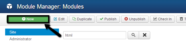 This tutorial reviews the process of adding an HTML block to your Joomla website. This is an easy process and in order to complete it you have to log into your website as administrator. Then navigate to the Extensions tab and then Module Manager.