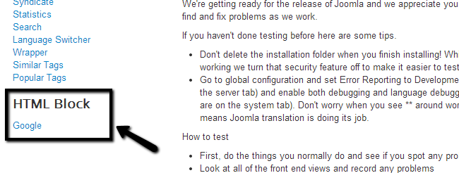 Once you complete all of the above steps, the HTML block will become visible on the front end of your website. Make sure that you have selected the correct position where you would like to place the HTML block.