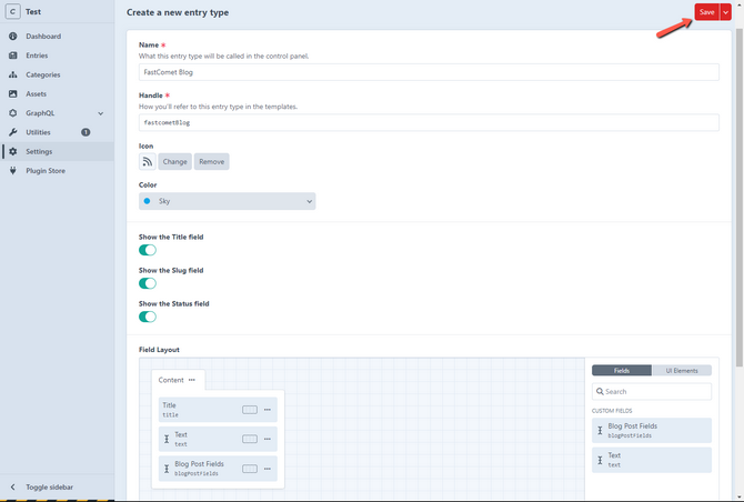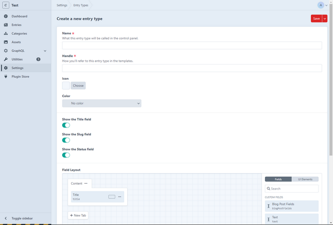 Firstly, go to Settings > Entry Types and click New Entry Type.