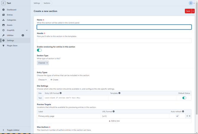 - Authors - You can decide how many authors can be associated with any entry within the Section;