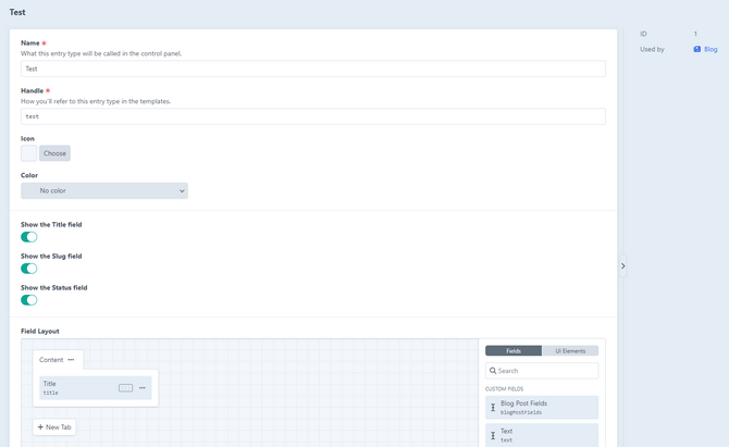 Each Entry Type can have its own custom fields, but there are several that every Entry Type has by default.