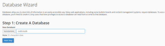 Then, put in the name of your database and click Next Step.