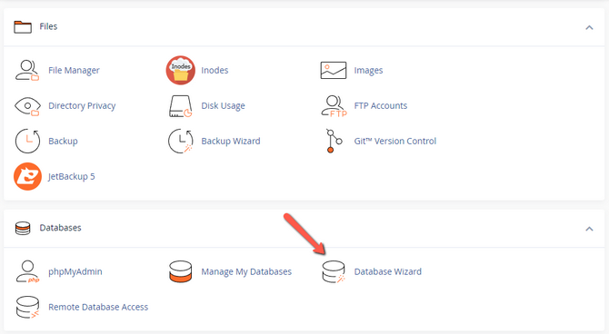 To begin, log into your cPanel and go to Database Wizard.