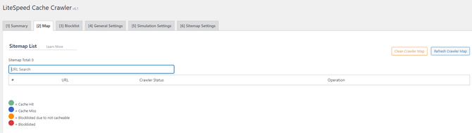 Additionally, adding a URI to the blocklist is as easy as clicking the button next to it in the Sitemap List. You can also see the status of each URI via the colored dots (legend at the bottom of the page), and finally, you can clear the list with the Clear Crawler Map button.
