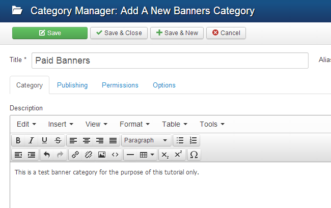 Click on the Save & Close button to create your banner category.
